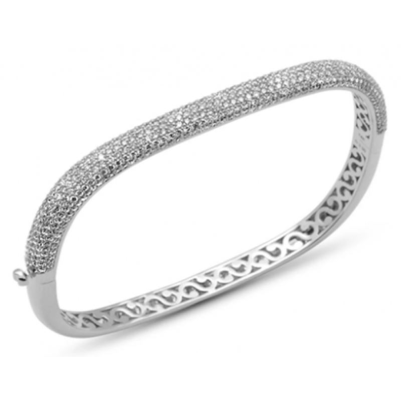 SPECIAL! 3.35ct G SI 14K White Gold Diamond Pave Square Bangle Bracelet 6.75"